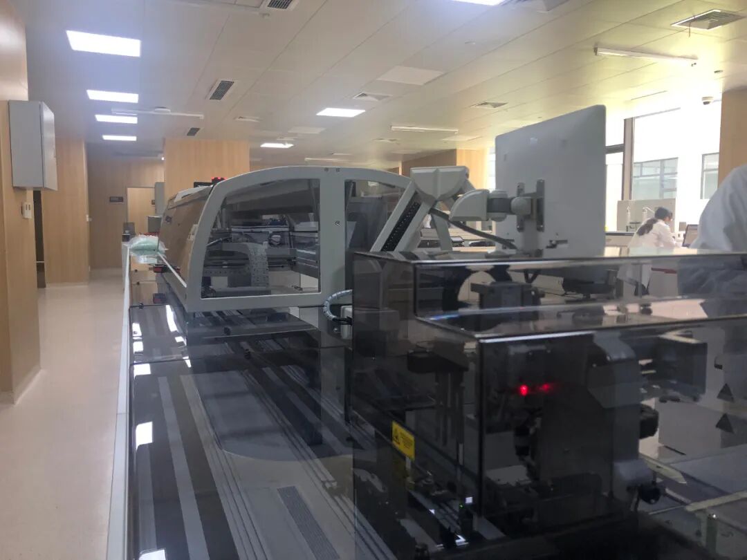 拣药环节使用的是全自动发药机器人,大大缩短了药品分拣时间。全自动进口检验流水线也缩短了患者等待报告的时间。血样放入自动轨道后,可以自动完成运输、开盖、样本分析。“原先我们要6个医务人员完成的工作量,现在3个人就可以了。”江桥医院检验科副主任医师许成新介绍。